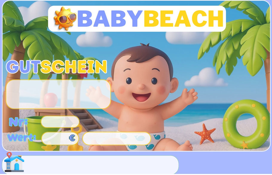 ÜBERRASCHEN SIE IHRE FAMILIE UND FREUNDE MIT EINEM BABYBEACH-GUTSCHEIN. ALLE GUTSCHEINE KÖNNEN TELEFONISCH ODER VOR ORT ERWORBEN WERDEN!