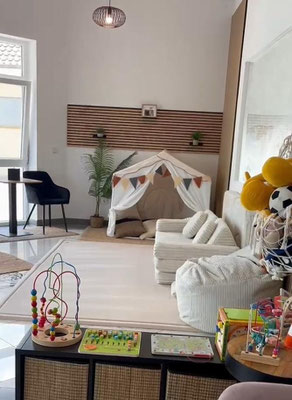 Für die kleinen Gäste gibt es eine Menge zu entdecken, zu bauen und zu spielen. Gerne können verschiedene Hörspiele für die Toniebox ausgeliehen werden, um es sich auf der Kindercouch gemütlich zu machen.