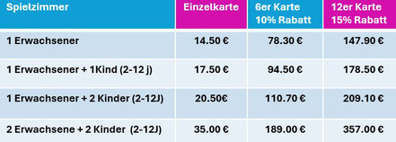 Kind ab 2 Jahren 2,50 € und Erwachsener 12,50 €