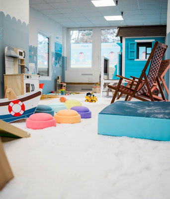 Eltern-Kind-Café mit einer Spielecke für die Kleinen und Indoor-Salzspielplatz.